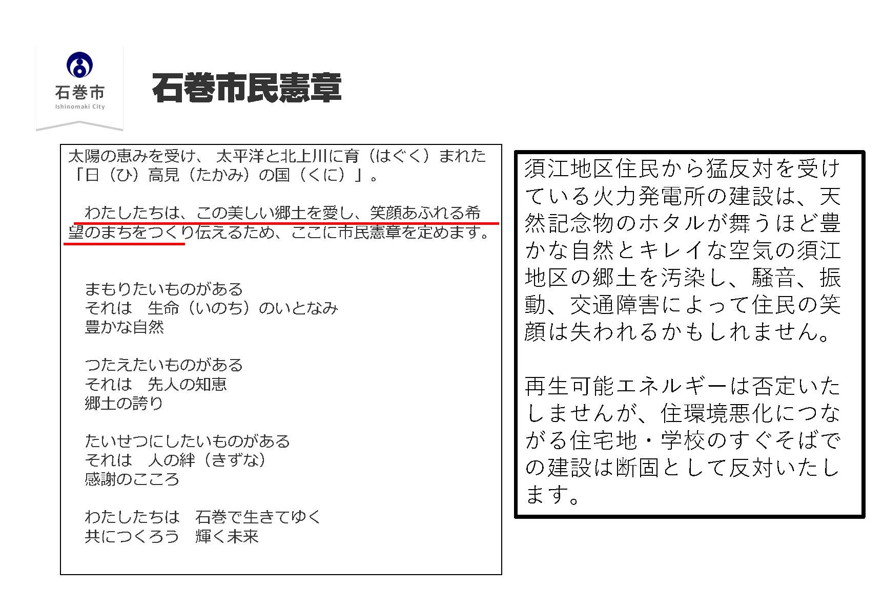 私達は石巻の地元団体の反対運動のお手伝いをさせていただきます。