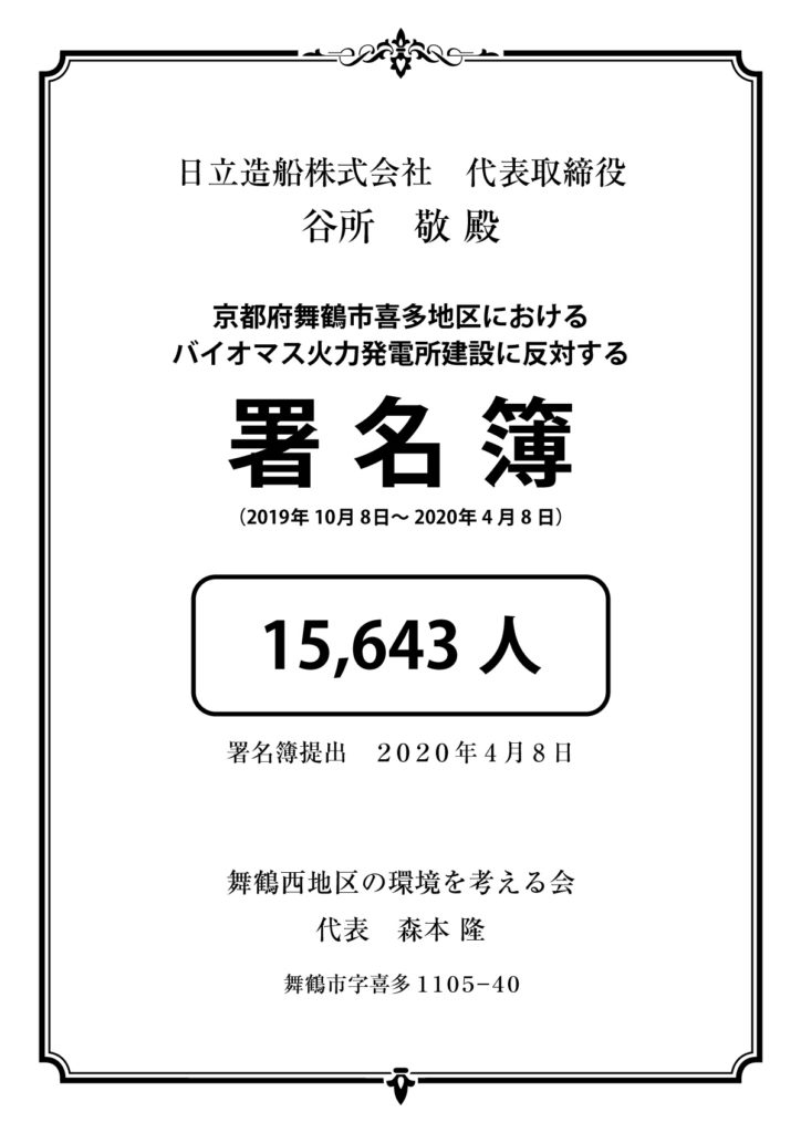 万が一建設がされた場合、住民被害は確実で日立造船のブランドを大きく損なう行為だと確信しています。