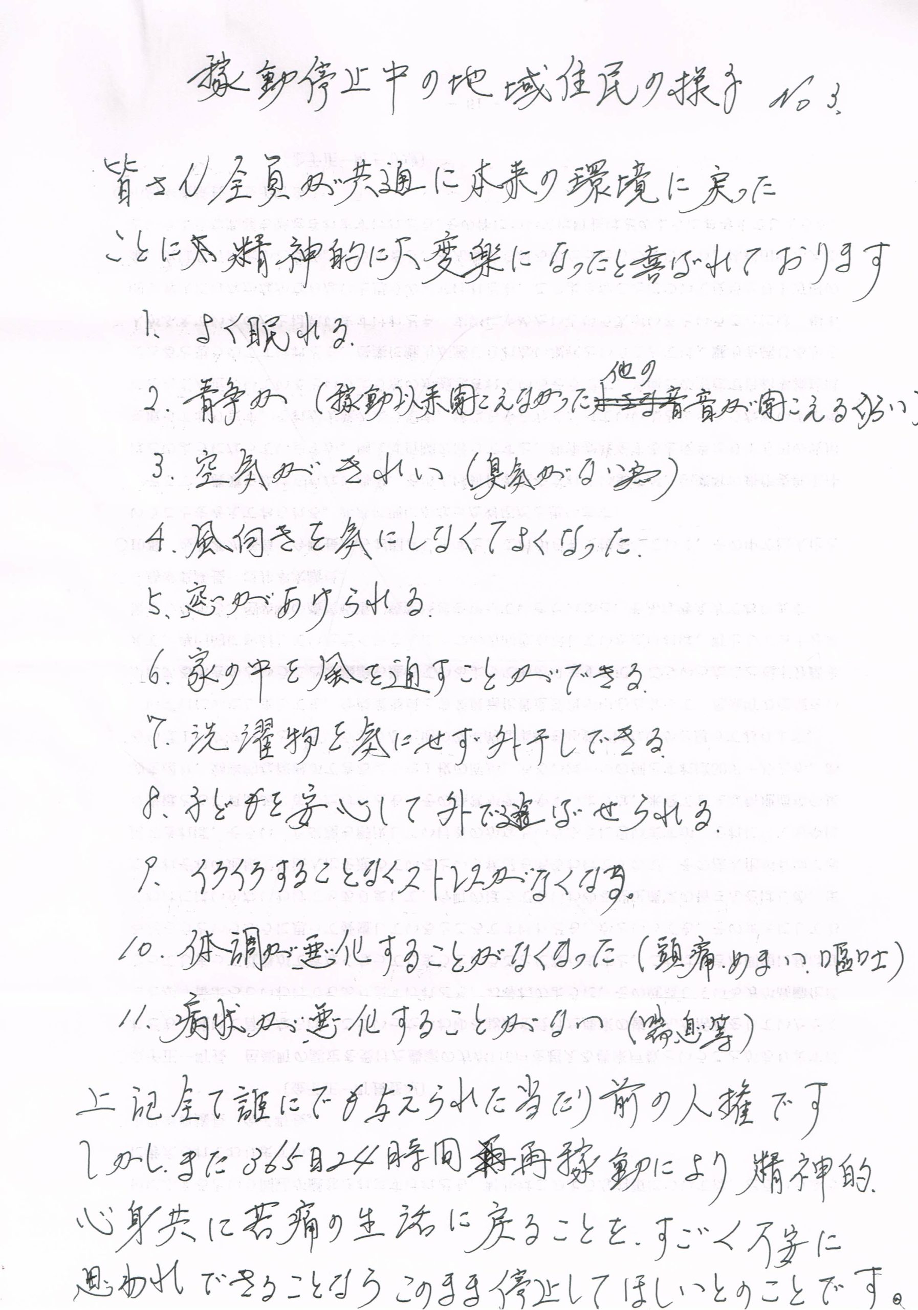 三恵バイオマス発電所悪臭騒音対策推進委員会のメンバーで近隣住民の稼働停止中の健康状態について聞き取り調査をしてまとめたものです。