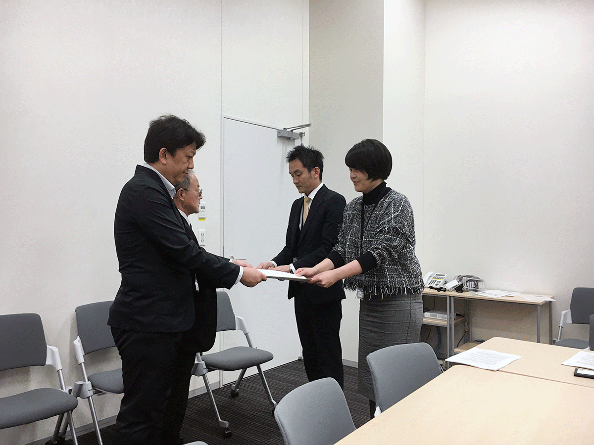 自民党 西田昌司議員の秘書に要望書と署名をお渡しできました!